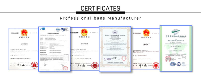 Dongguan Comerciales Richlong Co., Ltd Fue establecida en 2009, situado en Dongguan, Provincia de Guangdong, cubriendo un área de más de 3.500 metros cuadrados. Richlong es un profesional fabricante de productos bolsas con más de 10 años de experiencia, la integración de diseño, la I+D, fabricación, venta y servicio Equipo. Los productos incluyen la mochila, bolsa de hombro, bolsa para portátil, bolsa de pañales, bolsa de regalo, handbag, bolso, bolsa de viaje, bolsa de cosméticos, BOLSA DE DEPORTES, schoolbag , bolsa de almuerzo, bolsa de lona, bolsa de plumas, bolsa de archivo, etc. Richlong ha avanzado en maquinaria y equipo, más de 300 técnicos e ingenieros técnicos. Nuestra capacidad de producción promedio es de 300.000 bolsas por mes. Richlong tiene Un sistema de control de calidad muy estrictas, a partir de la selección de materiales, corte, bordados, impresión, costura, la inspección de producto terminado, el embalaje para garantizar la calidad. Su OEM y ODM pedidos están muy bien acogido.